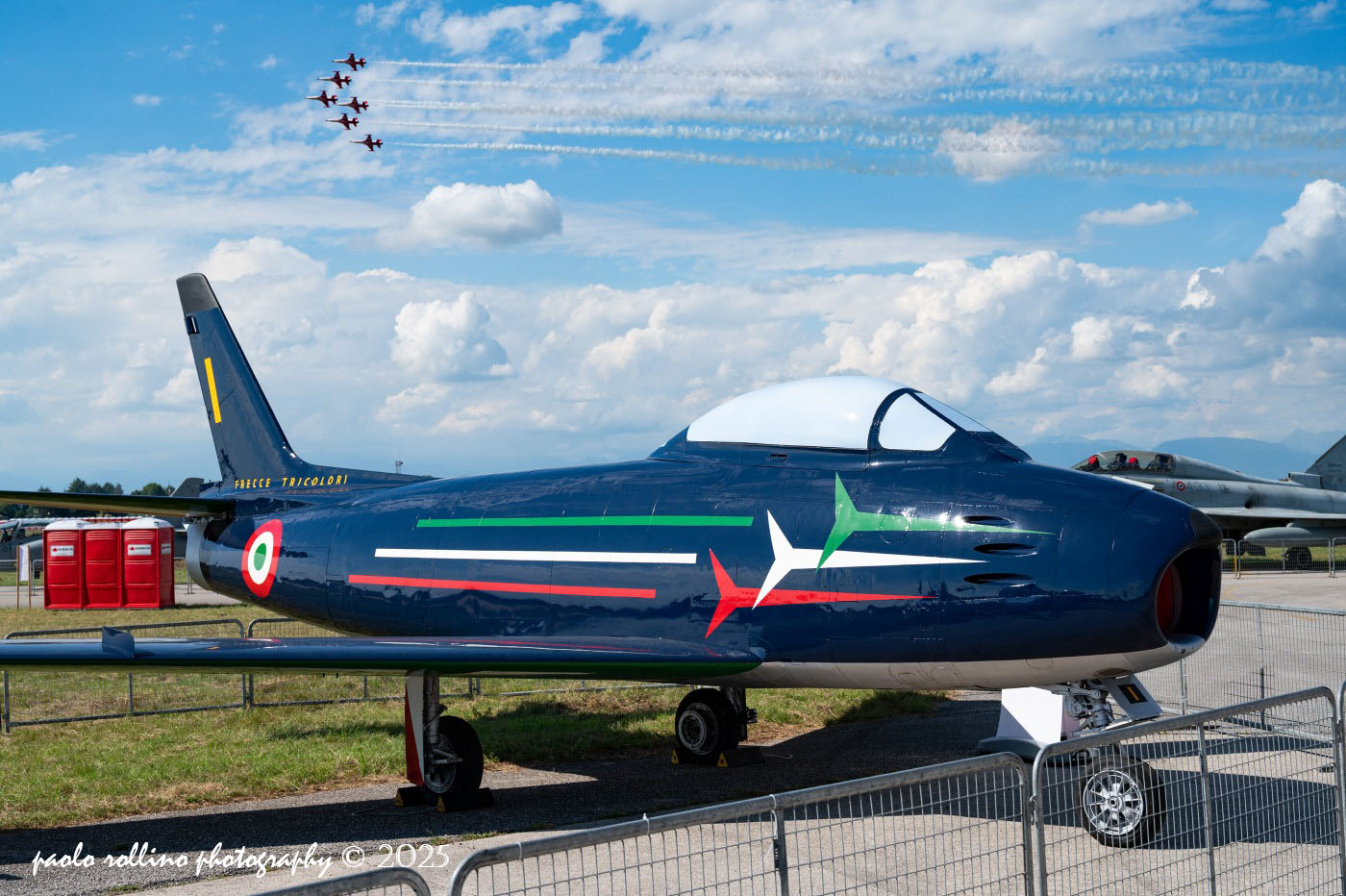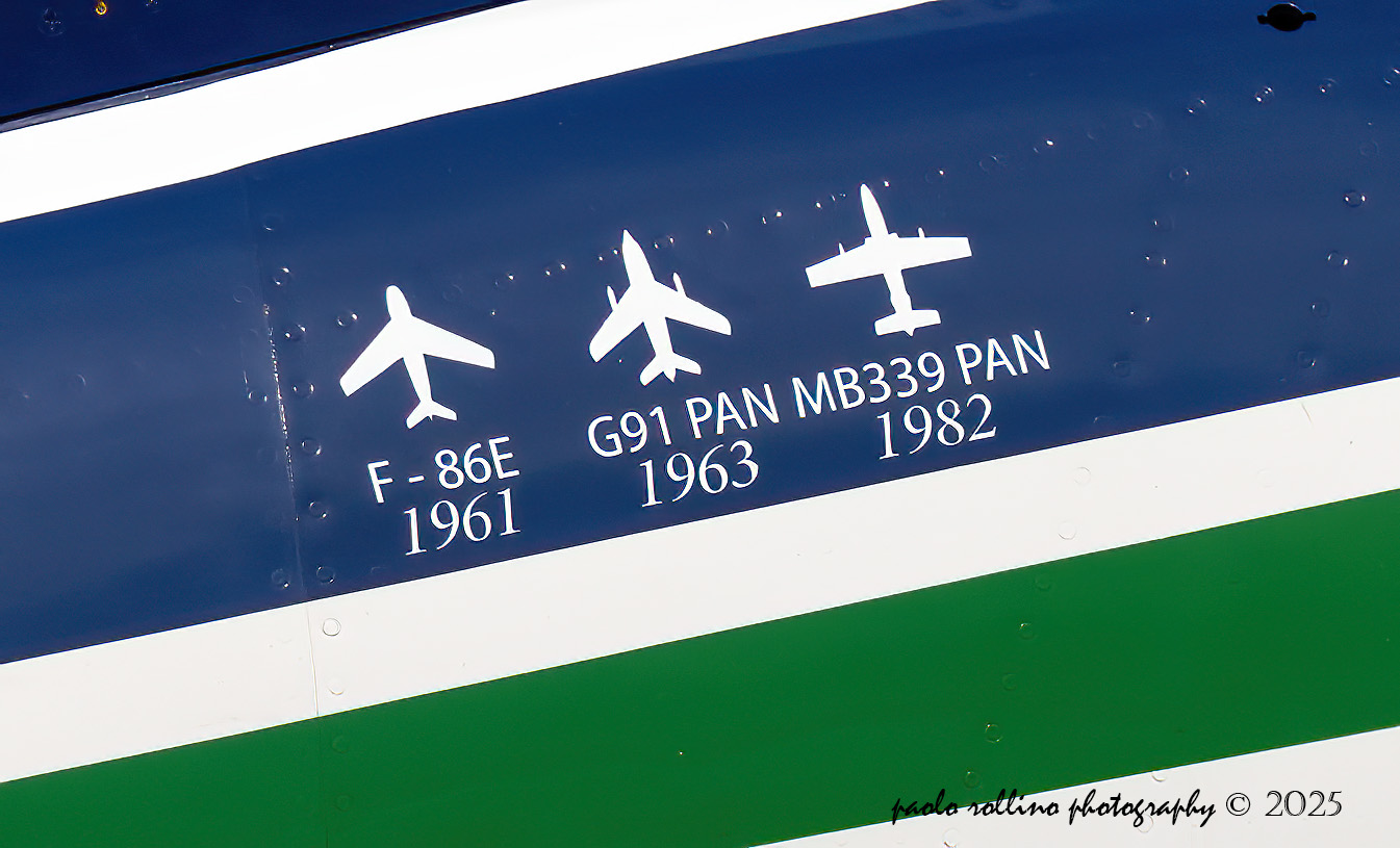 volo del G-91R con il colori della PAN, a testimoniare il passato del nostro team acrobatico nazionale, e ovviamente l'esibizione delle Frecce Tricolori, che